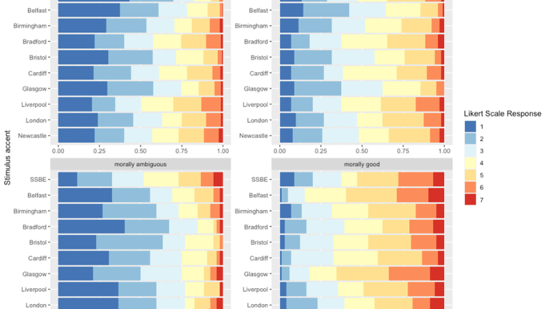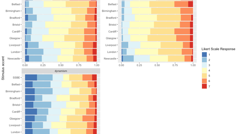 We prepared voice samples from 10 UK accents and asked listeners to rate these voices on social attributes broadly categorised as dimensions of ‘status’ (e.g. intelligence, richness), ‘solidarity’ (e.g. friendliness, trustworthiness) or ‘dynamism’ (e.g. confidence) - borrowing from sociolinguistic research. We also asked participants to rate whether the speakers would be likely to commit certain crime types (e.g. shoplifting, physical assault) as well as other non-criminal behaviours (e.g. infidelity, returning a lost wallet). Responses were collected in the form of Likert scale ratings where 1 = strongly disagree and 7 = strongly agree. 100 listeners completed either the social attributes ratings or the behavioural ratings.