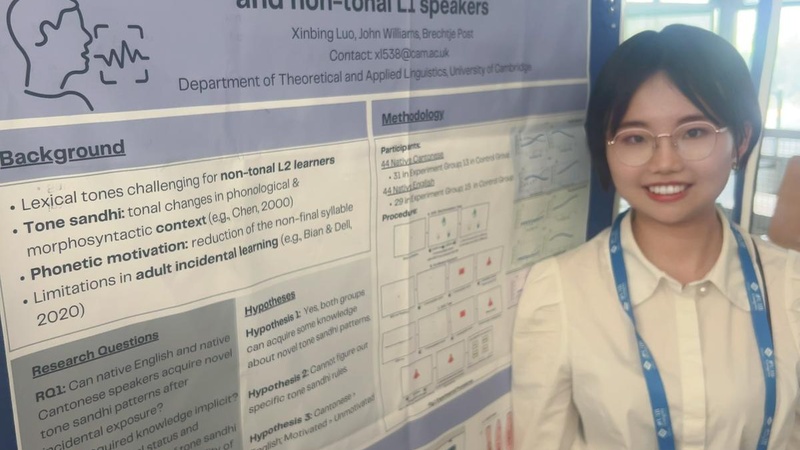 The study forms part of a new collaboration between the Phonetics Laboratory (Julia Schwarz, Katrina Kechun Li, Jasper Hong Sim, Yixin Zhang, Brechtje Post & Kirsty McDougall), the MRC Cognition and Brain Sciences Unit (Elizabeth Buchanan-Worster), and the Faculty of Education (Jenny Gibson) and has received funding from the Cambridge Language Sciences Incubator Fund.